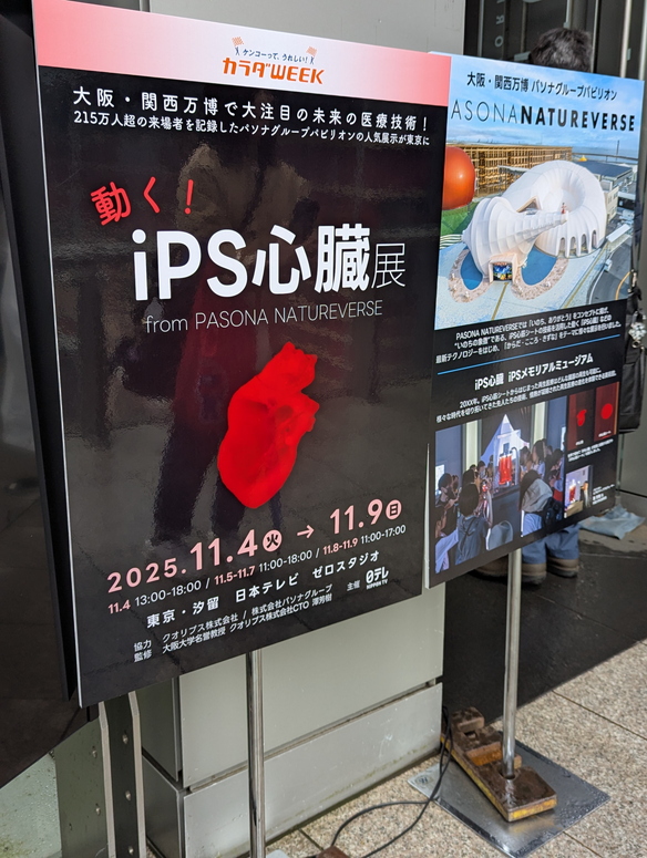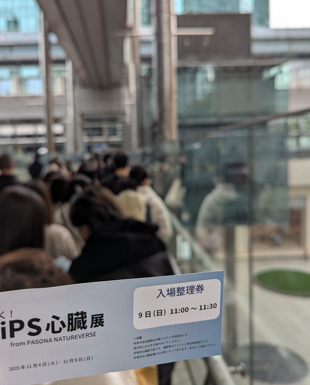 東京でiPS心臓展をやると聞きまして 投稿者:コンちゃん(佐々木) 投稿公開日:2026年4月24日 投稿カテゴリー:旅行 投稿コメント:0件のコメント こんにちは。コンちゃんこと佐々木です。 大阪万博に行けなかったのですが、東京でiPS心臓展をやるとのこと。見に行こう!!! 9時ジャスト頃に行ったところ、11時の入場券を入手しました。写真は11時に戻ってきて入場待ちのやつ。 これが……iPS心臓……! 動画もあります。動いてる!! iPS心筋シートもございます。ポテチみたいなやつです。 こちらも動画。 いやー動いてる実物すごいですね。それでは。 コメントを残す コメントをキャンセルコメントコメントする名前またはユーザー名を入力してください メールアドレスを入力してコメント Web サイトの URL を入力してください。(任意) 次回のコメントで使用するためブラウザーに自分の名前、メールアドレス、サイトを保存する。 email confirm* post date* 日本語が含まれない投稿は無視されますのでご注意ください。(スパム対策)